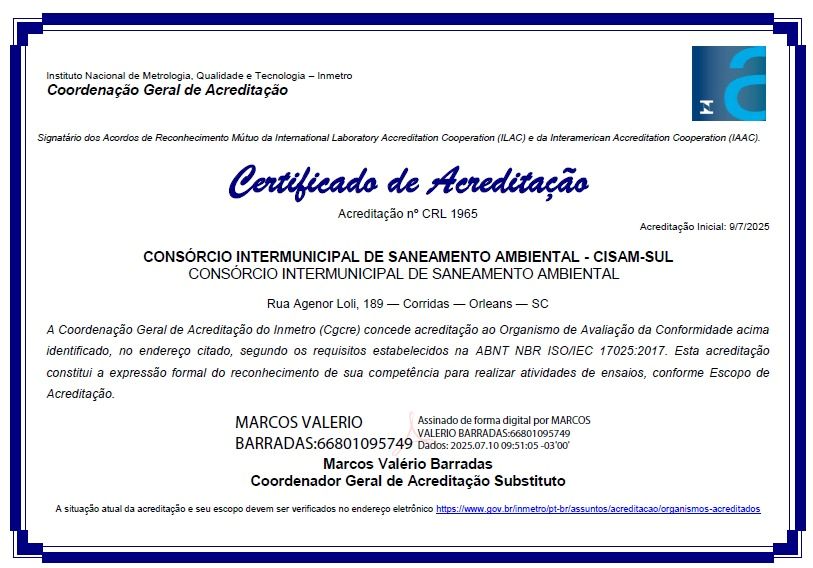 CISAM-SUL Conquista Acreditação do Inmetro para seu Laboratório de Análises